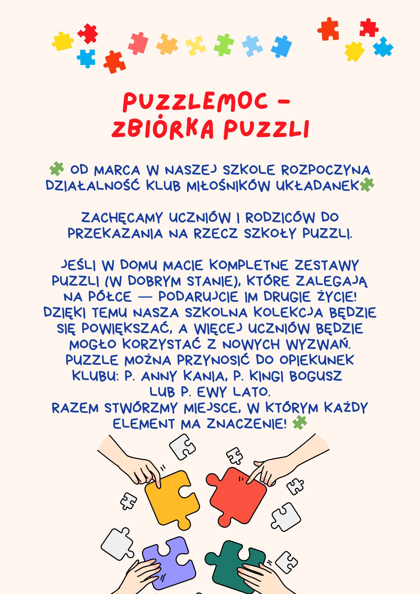 📢 Powstaje Klub „PuzzleMoc – Szkolny Klub Miłośników Układanek”!📢