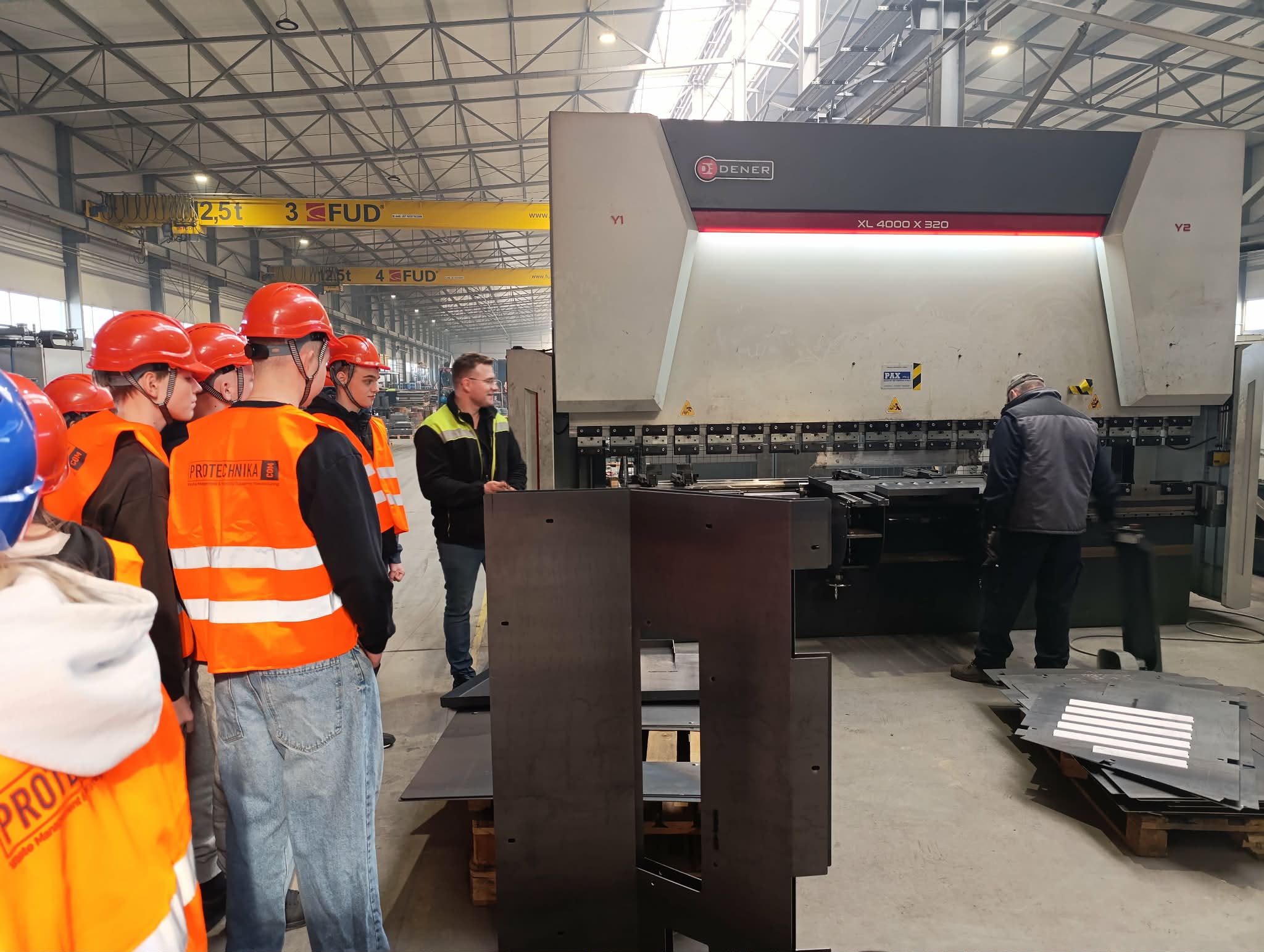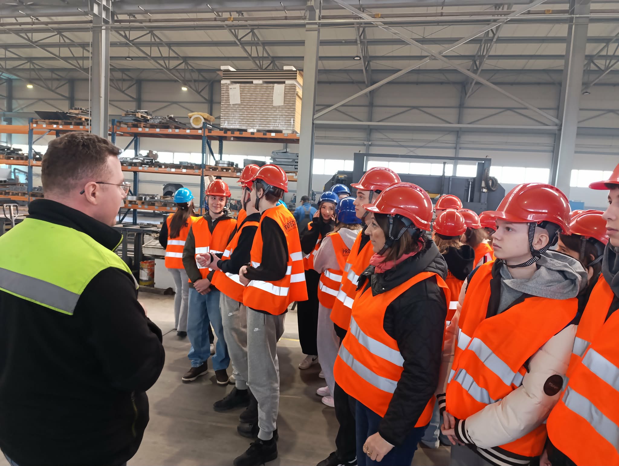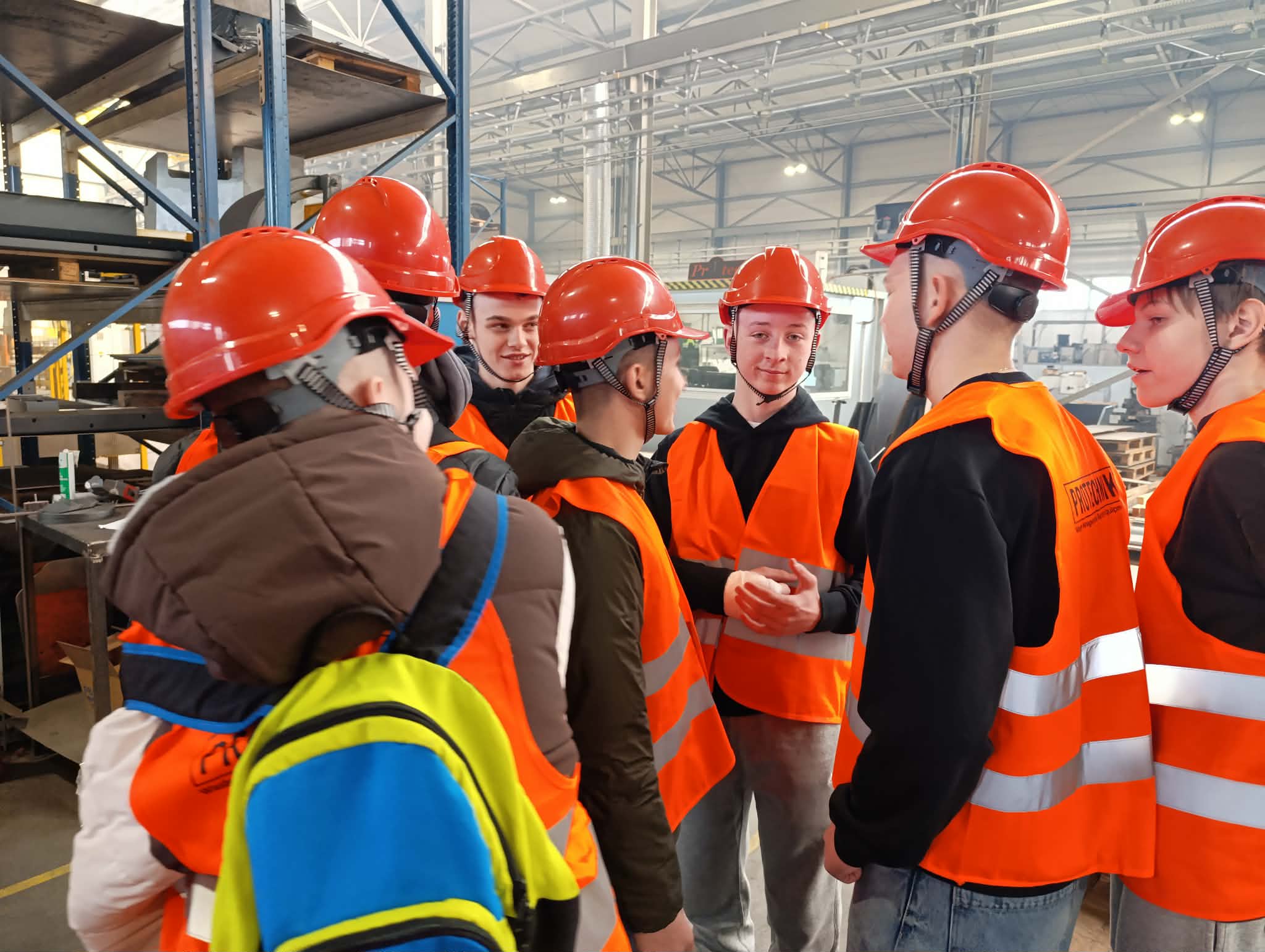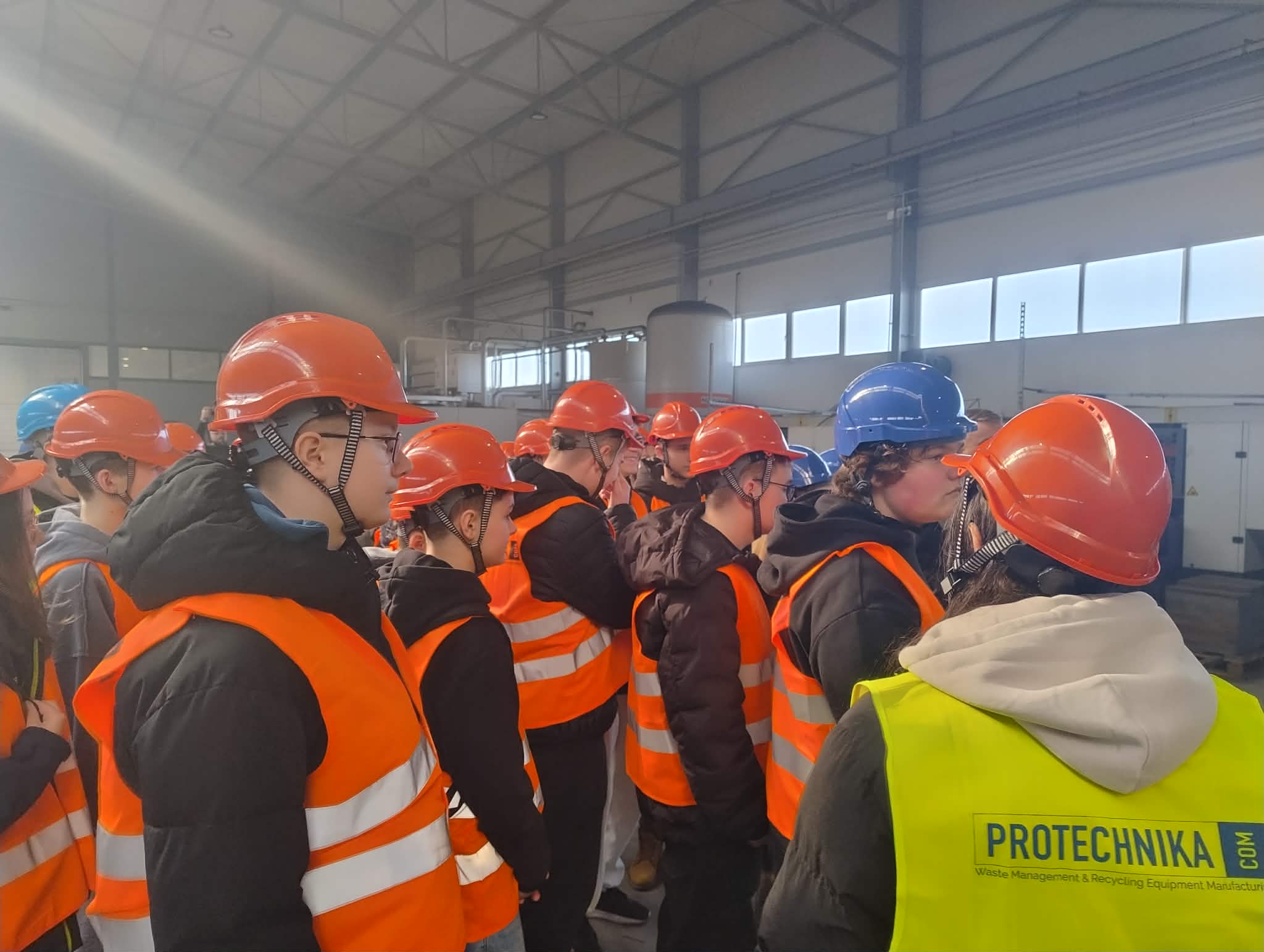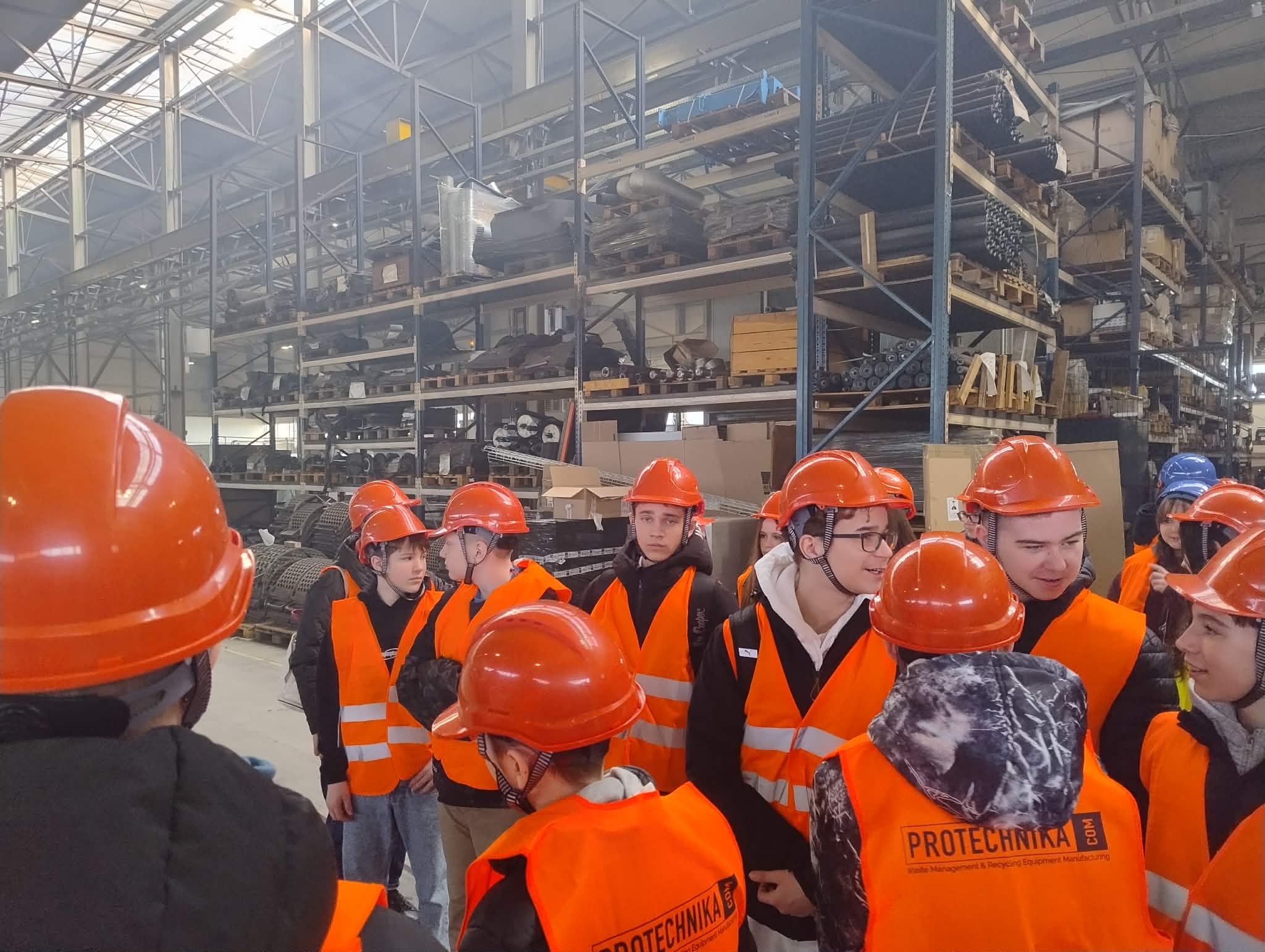 Uczniowie odwiedzili również zakład produkcyjny Protechnika, specjalizujący się w projektowaniu i produkcji zaawansowanych maszyn oraz urządzeń dla branży ochrony środowiska, recyklingu, gospodarki odpadami oraz przemysłu biomasowego – zwiedzili halę produkcyjną oraz uczestniczyli w ciekawym wykładzie na temat produkcji i nowoczesnych rozwiązań.