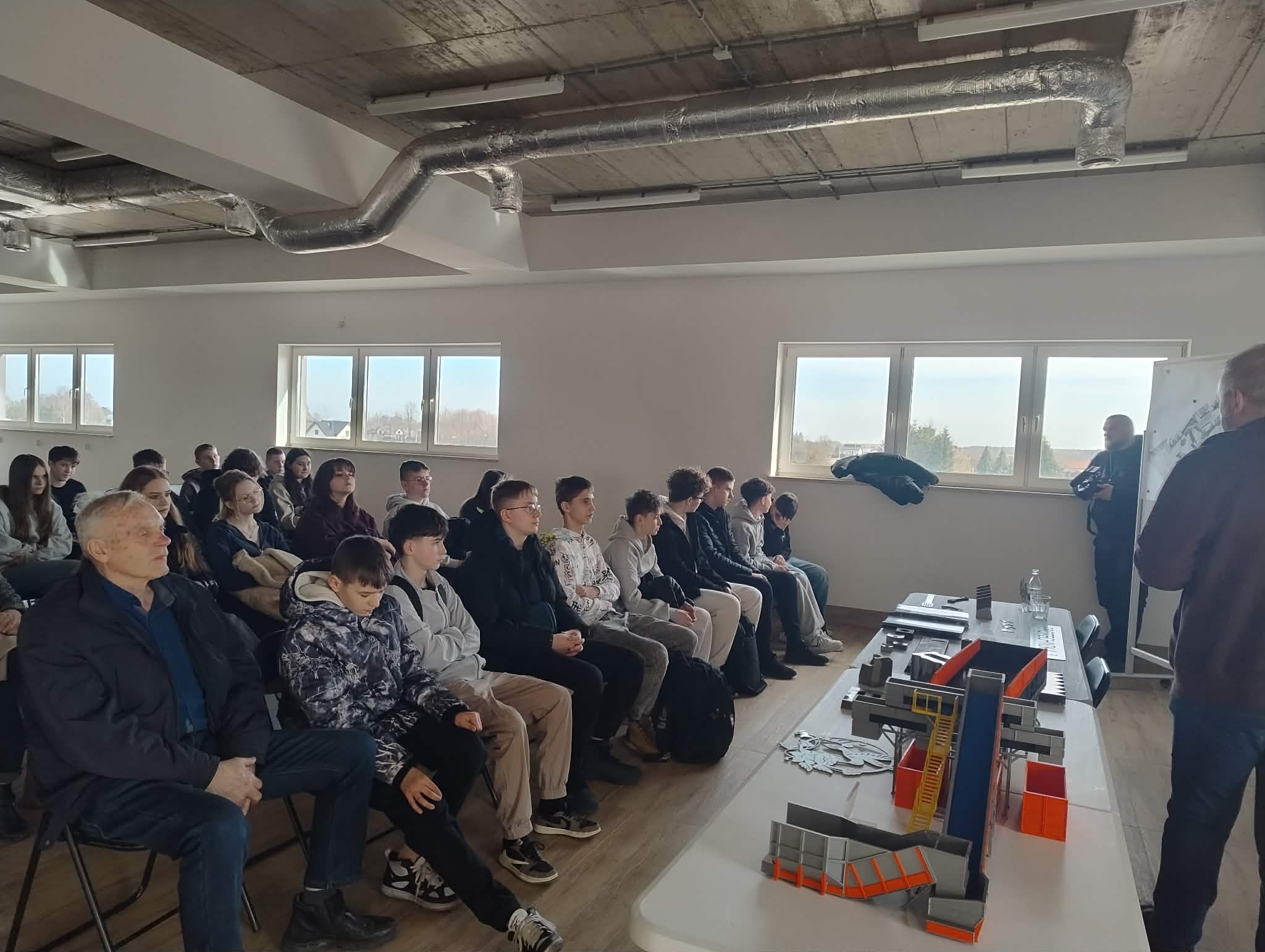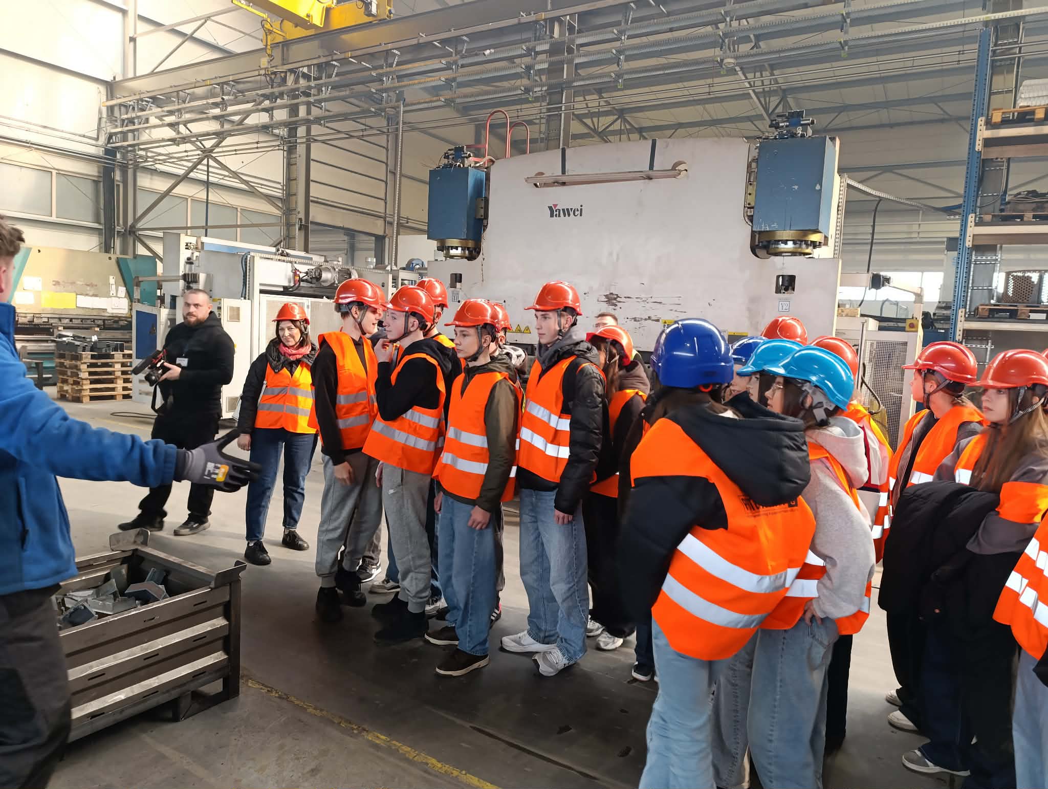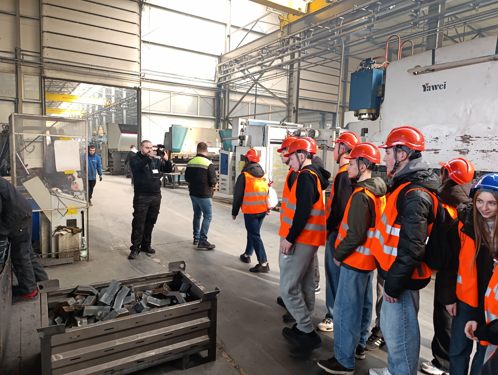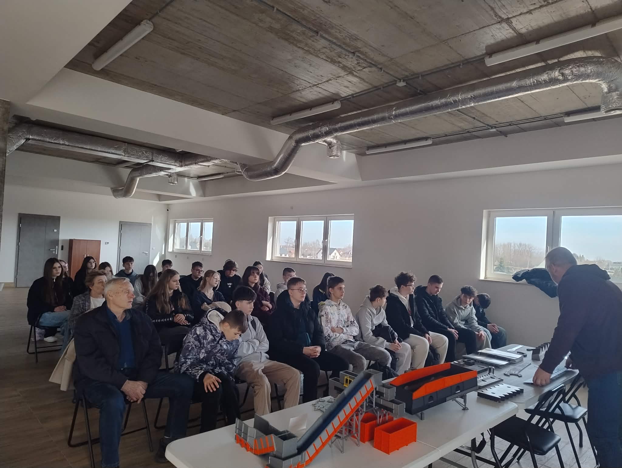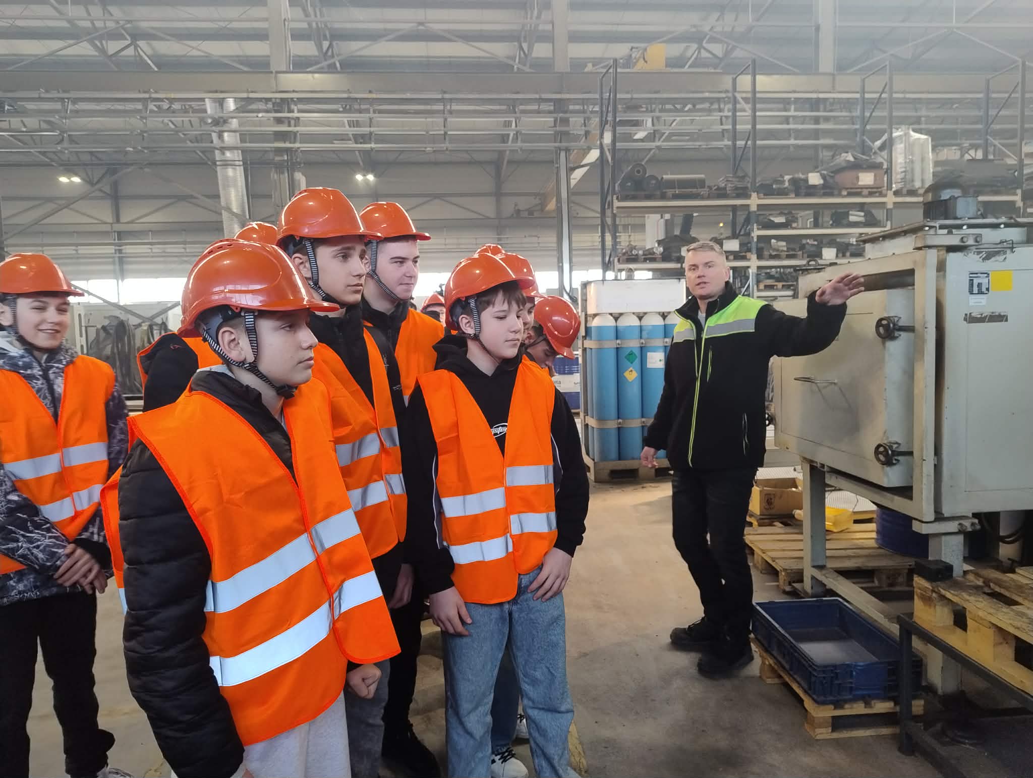 Uczniowie odwiedzili również zakład produkcyjny Protechnika, specjalizujący się w projektowaniu i produkcji zaawansowanych maszyn oraz urządzeń dla branży ochrony środowiska, recyklingu, gospodarki odpadami oraz przemysłu biomasowego – zwiedzili halę produkcyjną oraz uczestniczyli w ciekawym wykładzie na temat produkcji i nowoczesnych rozwiązań.