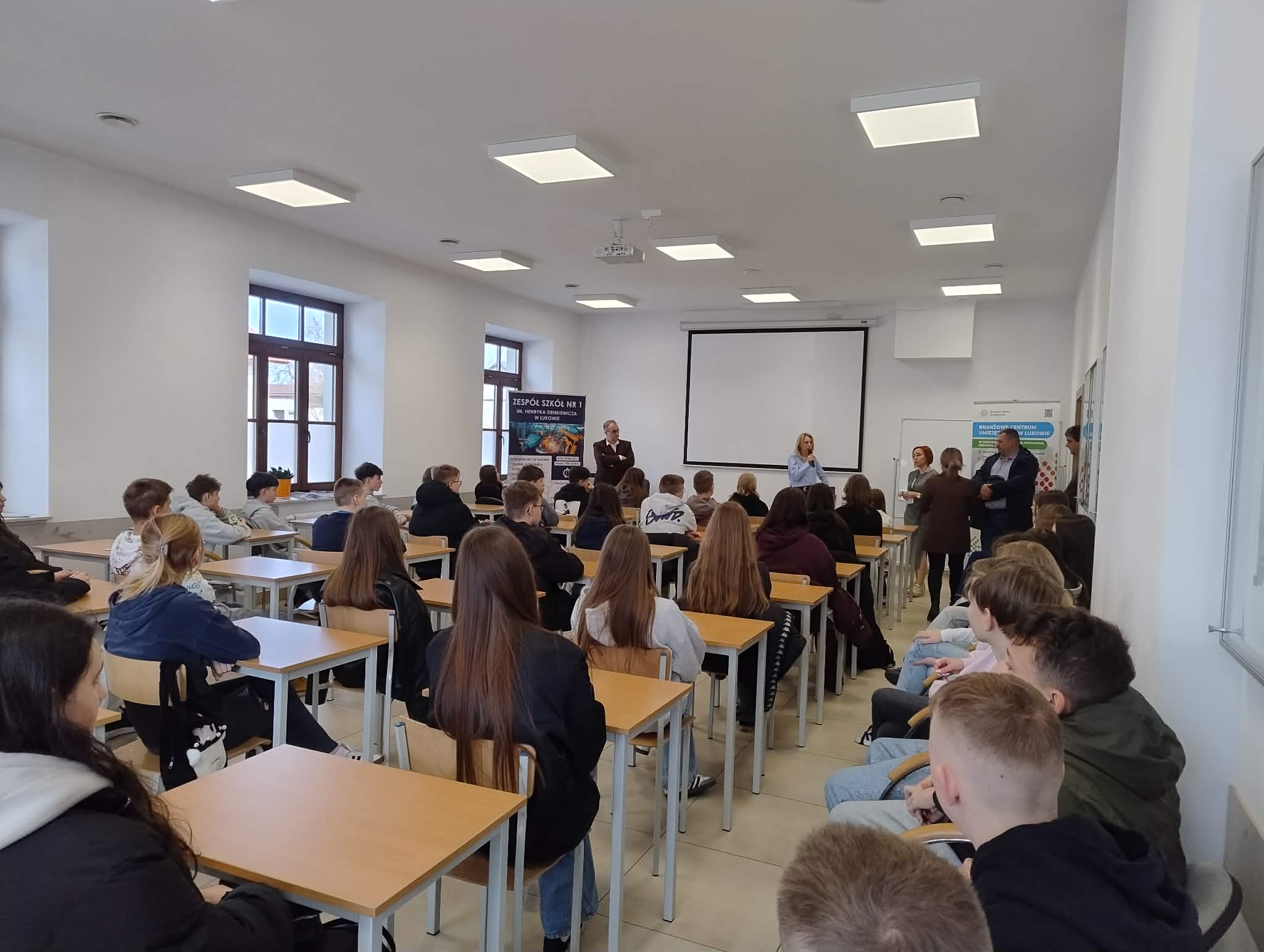 W dniu dzisiejszym uczniowie klas 7 i 8 wzięli udział w warsztatach zawodoznawczych organizowanych przez Zespół Szkół Nr 1 im. Henryka Sienkiewicza w Łukowie we współpracy z Branżowym Centrum Umiejętności w Łukowie w ramach projektu „Technik w Akcji”.