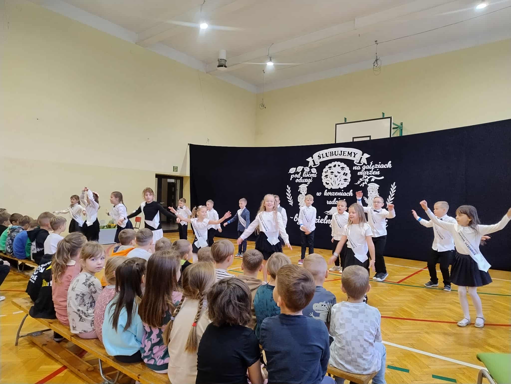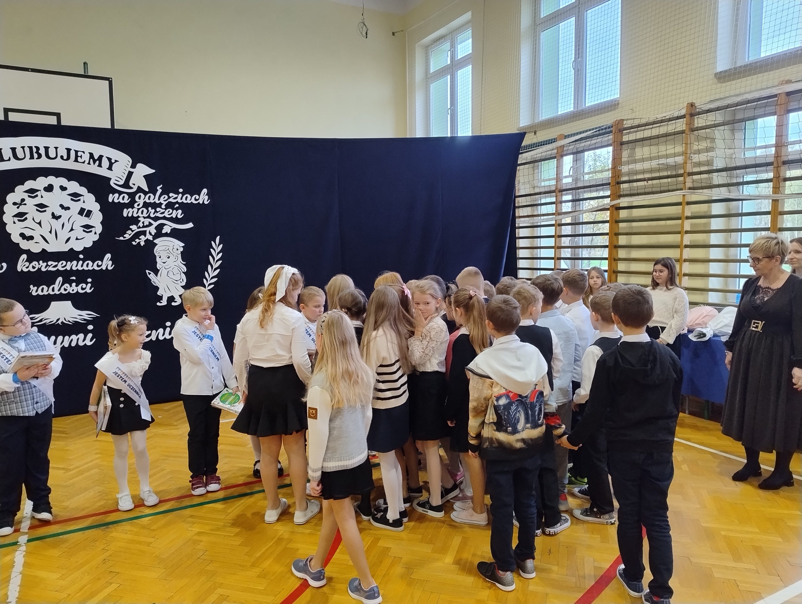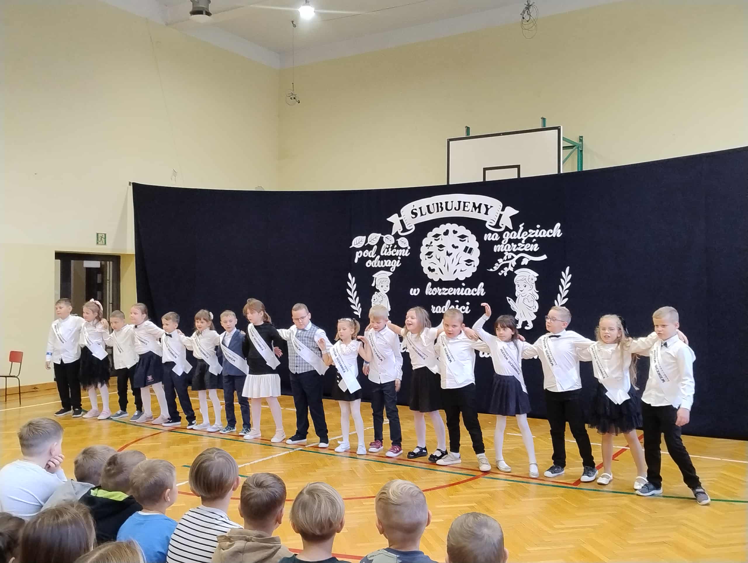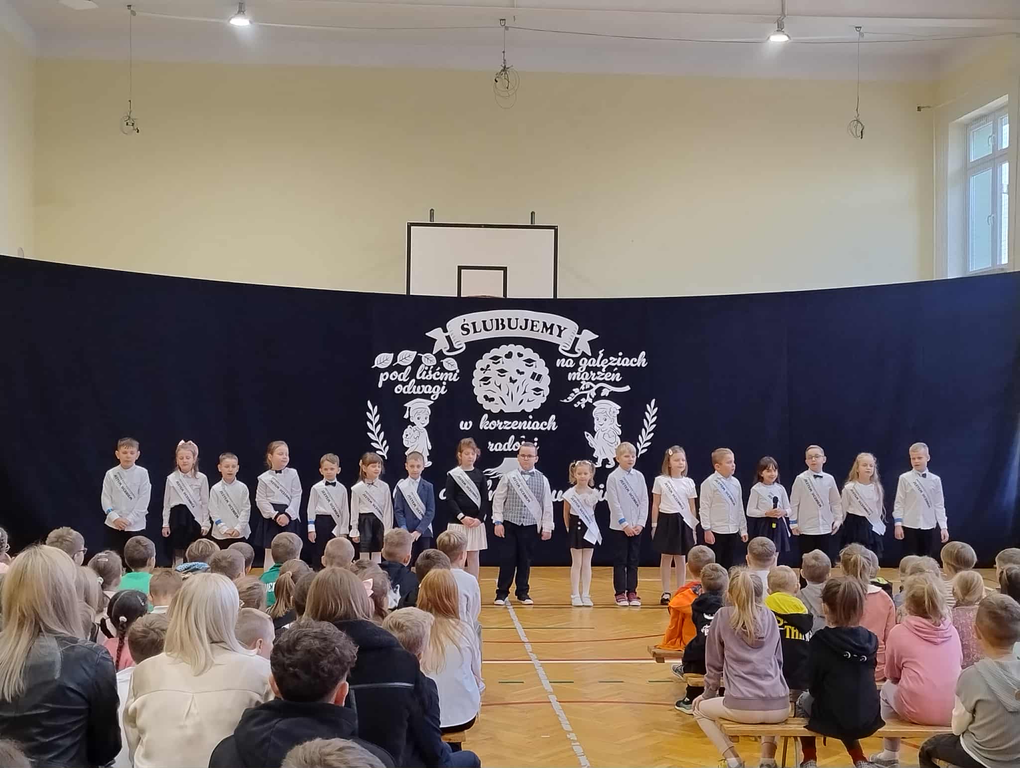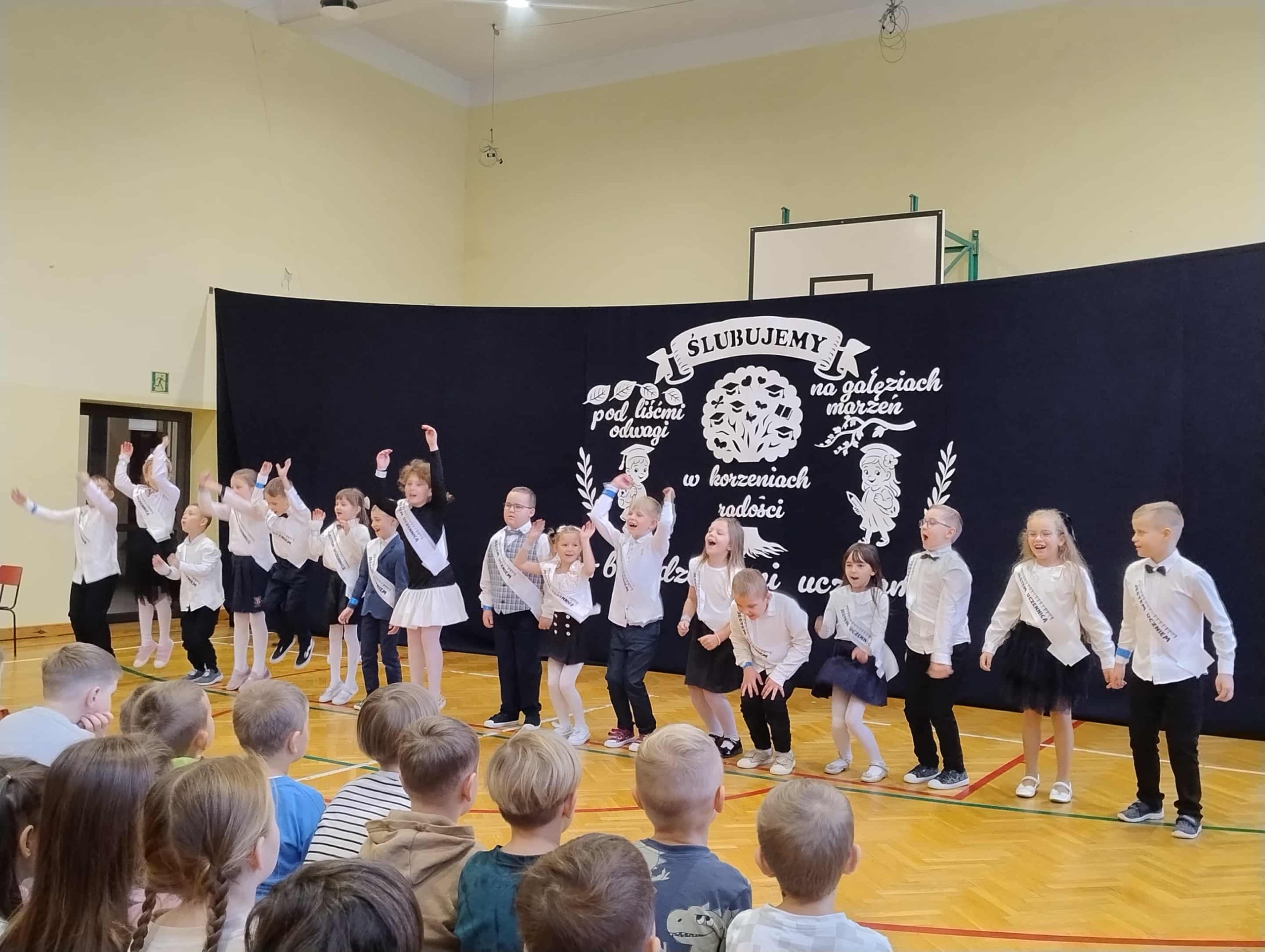 23 października w naszej szkole odbyło się uroczyste ślubowanie klasy I. To wyjątkowa uroczystość, przyjęcie najmłodszych w poczet uczniów . Był to pierwszy występ dzieci na szkolnej scenie, ale poradzili sobie znakomicie. Tego dnia nie mogło zabraknąć muzyki, tańca i wierszy. Następny punkt programu ślubowanie oraz pasowanie na ucznia przebiegło w bardzo uroczystej atmosferze. Uczniowie zachowali się godnie oraz otrzymali pamiątkowe dyplomy i upominki. Tak upłynął ten wyjątkowy dzień. Gratulujemy uczniom oraz dziękujemy ich najbliższym za pomoc w przygotowaniach do ślubowania.