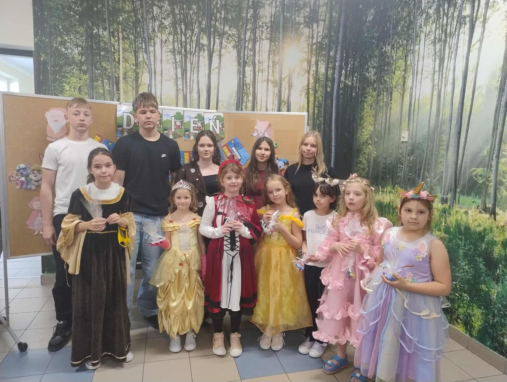 Uczniowie klas 1–8 oraz przedszkolaki wcielili się w ulubione postacie z bajek i baśni – na szkolnych korytarzach można było spotkać m.in. królewny, superbohaterów, wróżki, rycerzy i wiele innych bajkowych bohaterów. 🏰✨
