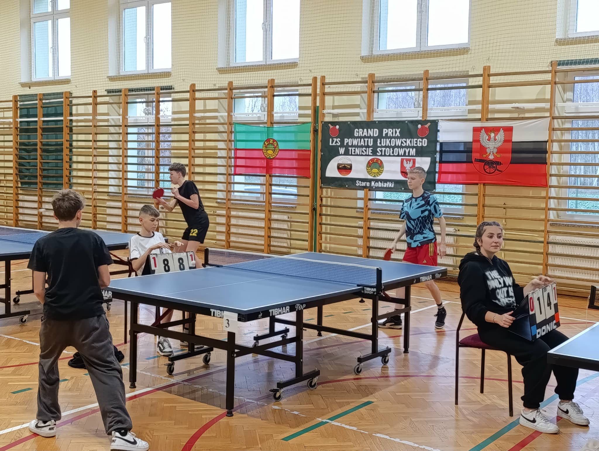 W sobotę 29 listopada 2025 w Zespole Oświatowym w Starych Kobiałkach odbył się pierwszy turniej w sezonie 2025/2026 cyklu Grand Prix Powiatowego Zrzeszenia LZS w tenisie stołowym. W turnieju wystartowało 65 zawodniczek i zawodników z Powiatu Łukowskiego. Otwarcia cyklu zawodów dokonał dyrektor Zespołu Oświatowego w Starych Kobiałkach pan Krzysztof Czub. Życząc wszystkim startującym w zawodach pierwszych miejsc zaznaczył, że największym sukcesem jest sam udział w bezpiecznej rywalizacji sportowej w gronie rówieśników. Uczniowski Ludowy Klub Sportowy „Junior” przy Szkole Podstawowej w Starych Kobiałkach reprezentowało 18 zawodników i zawodniczek. W poszczególnych kategoriach wiekowych na podium uplasowali się: Kaja Ocep , Karolina Mikusek, Mariola Woźna i Wojciech Bogusz zajmując III miejsca. Oliwia Woźna i Emil Plak zajęli II miejsca, a Katarzyna Plak w kategorii open kobiet zajęła I miejsce. Wysokie miejsca w swoich kategoriach wiekowych zajęli Jan Kania, Kacper Woźny, Wojciech Bajewski, Maria Wołoszka i Aleksander Kania. Zawody przebiegły w miłej i przyjaznej atmosferze sportowej. Gratulujemy wszystkim uczestnikom osiągniętych wyników, zachęcamy do udziału w kolejnych turniejach sezonu tenisowego.
