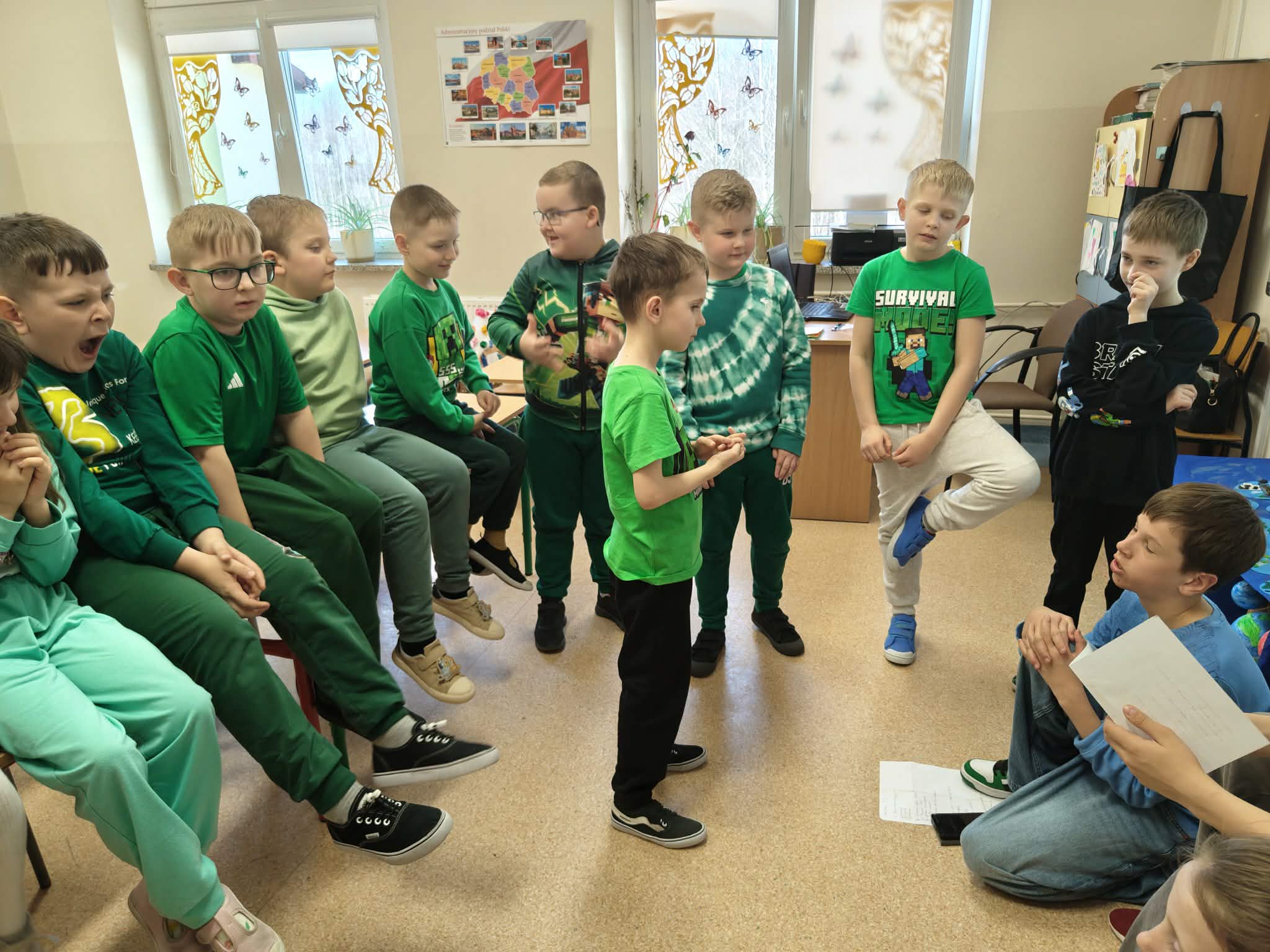 Uczniowie przyszli ubrani w wiosenne kolory, a szczególnie dominowała zieleń. Obchodziliśmy także Dzień bez plecaka oraz Dzień Kolorowej Skarpetki – kreatywność i pomysłowość naszych uczniów jak zawsze nas nie zawiodły!