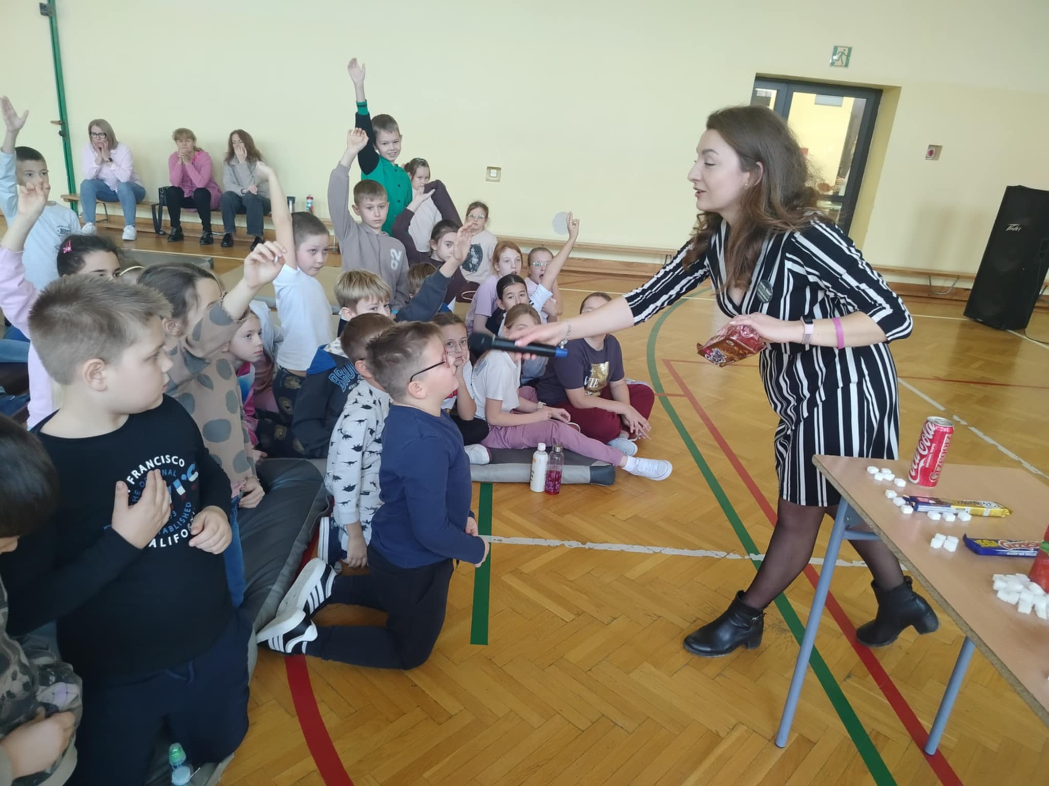 Podczas spotkania uczniowie odkrywały, ile cukru kryje się w popularnych produktach 🍪🍫oraz uczyły się, jak wybierać zdrowsze alternatywy. Warsztaty były pełne ciekawostek, praktycznych wskazówek i pozytywnej energii! ✨